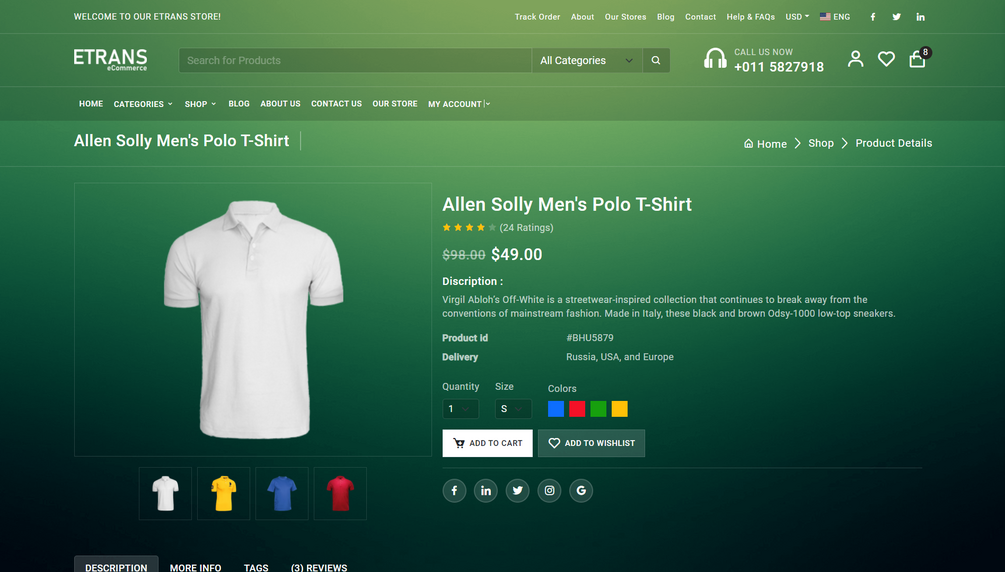 eTrans is an eCommerce Html based template. It is built with the bootsrap5 framework. It is a built-in transparent version, which is a very unique concept. It has all the required tools and features to create a super-fast responsive eCommerce with an amazing UI and UX experience. eTrans comes with tons of powerful and convenient features to make your website a success. eTrans is perfect for different category store websites: fashion, accessories, shoes, bags, t-shirts, electronics, furniture, sport, toys, nutrition, books, shop, and any more. Lastly, you will get our dedicated after-sales support and regular free updates.