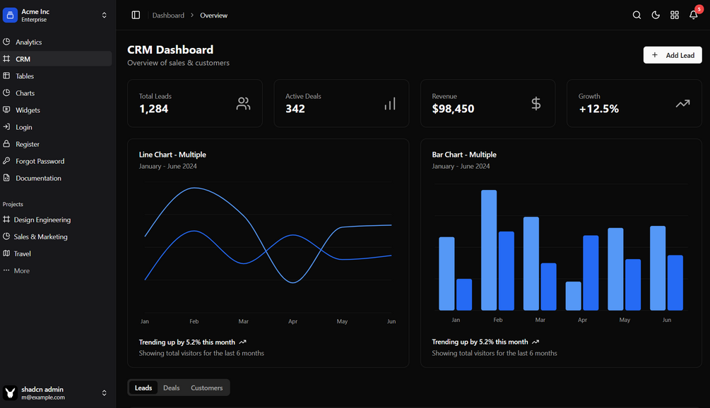 React19 + Tailwind CSS + Shadcn/UI Admin Template Source Code