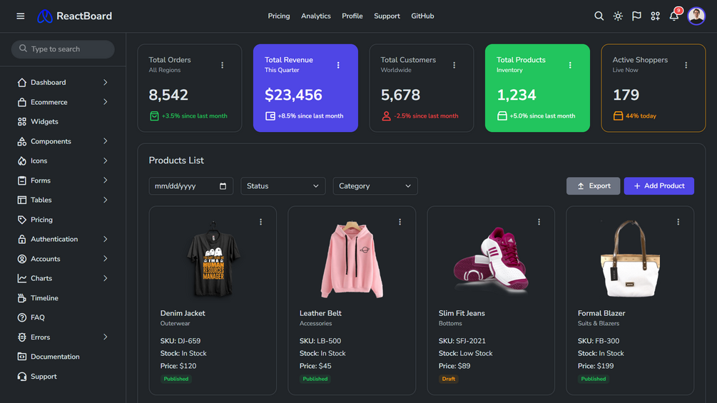 Live Demo (HTML):https://codervent.com/reactboard-html/demo/index.html