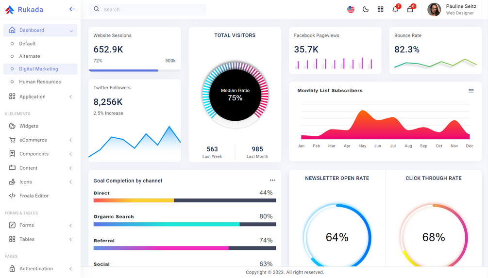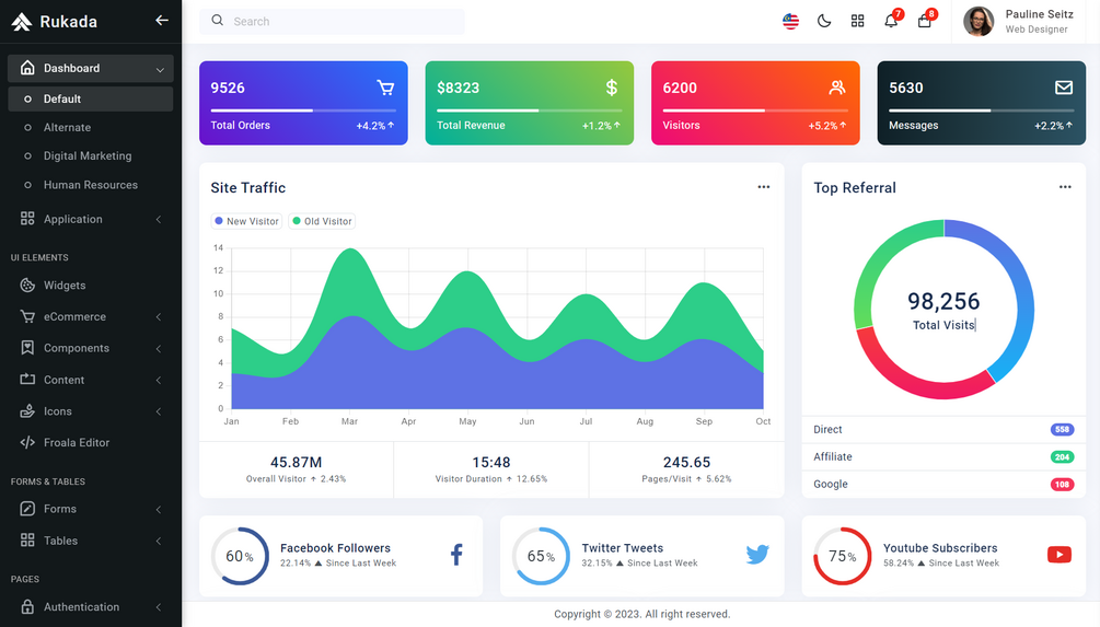Packed with a rich collection of reusable UI components and integrated with modern Bootstrap and jQuery plugins, Rukada Admin ensures you have everything needed to build dynamic and responsive web applications.