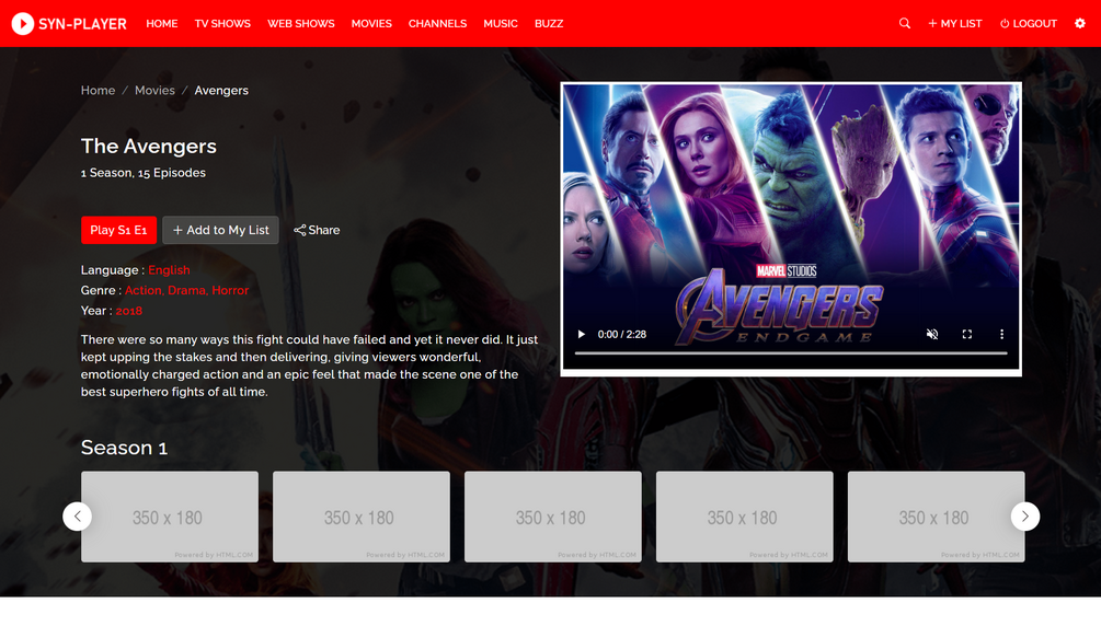 Syn Player is an online movie and Web shows portal. By using this template you can build your own movies web portal. This Template is created with the Bootstrap 5 frameworks. It is fully responsive and works in all major web browsers. In this portal, all functionalities related to all video portals, are included. This theme has a multicolor color combination. Code quality is very awesome and good for every developer.